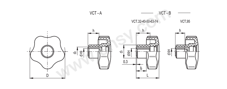 VCT-B:黄铜凸台,螺纹盲孔(VCT.25 - 95)或螺纹通孔(VCT.32 - 40 - 50 - 63 - 74)。