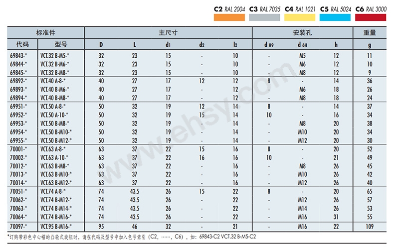 VCT-AZ:镀锌钢凸台,螺纹通孔。