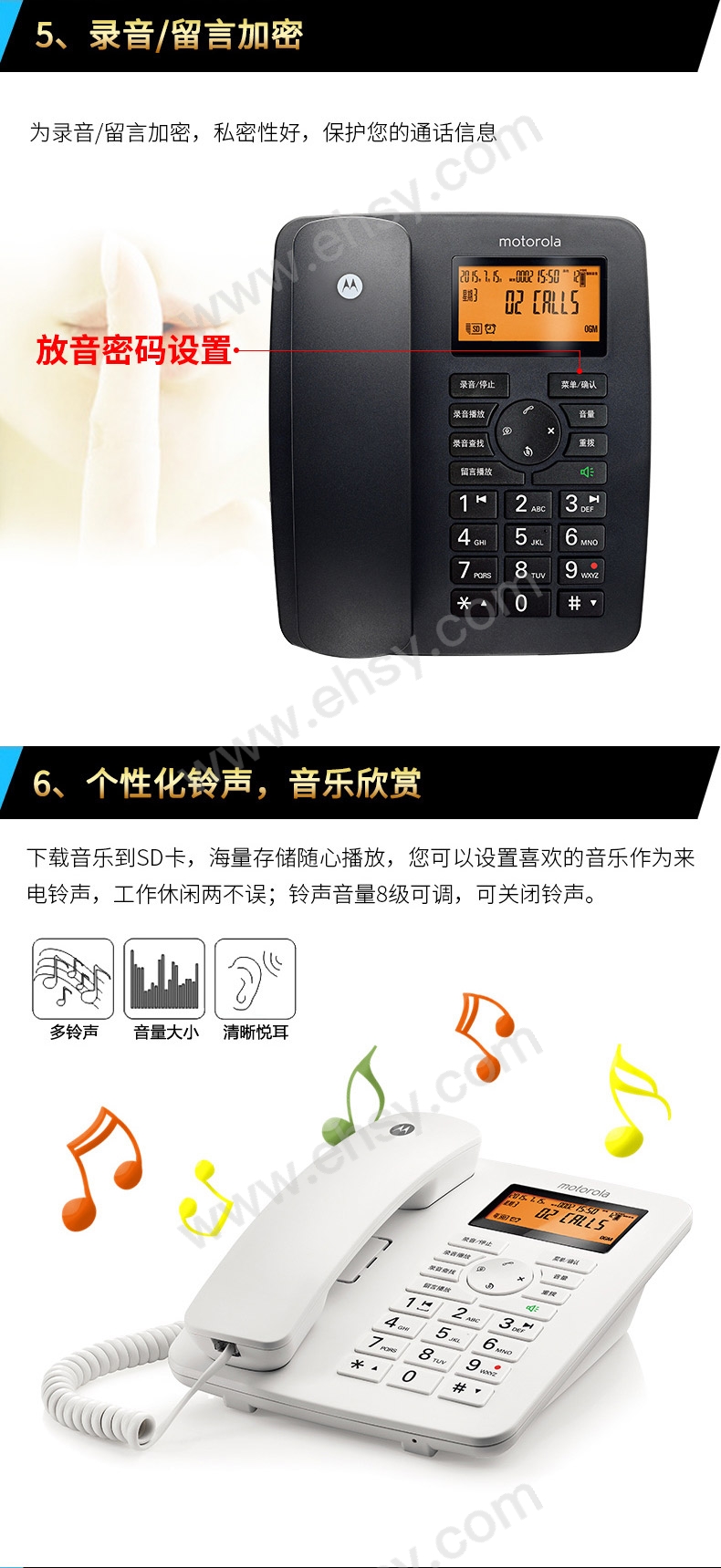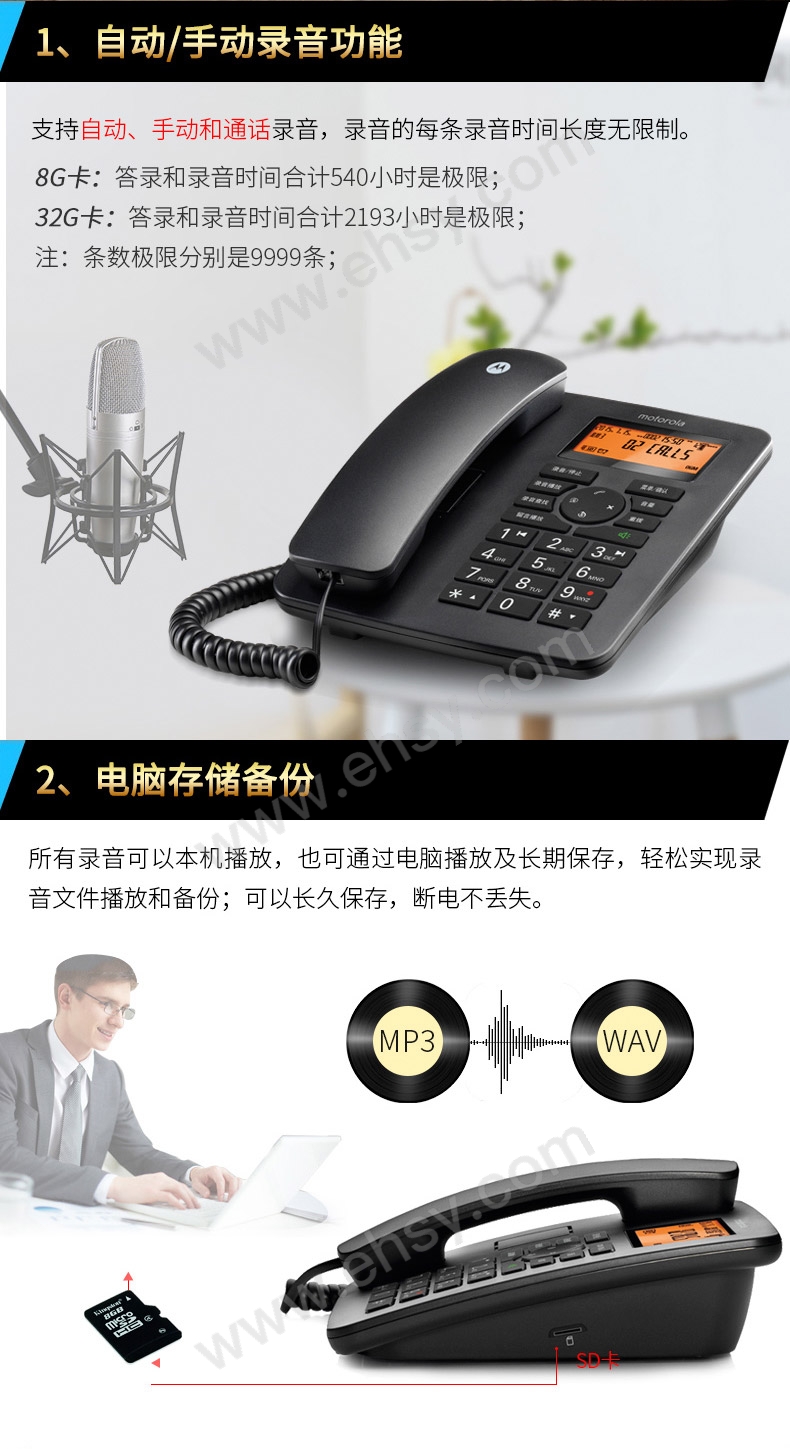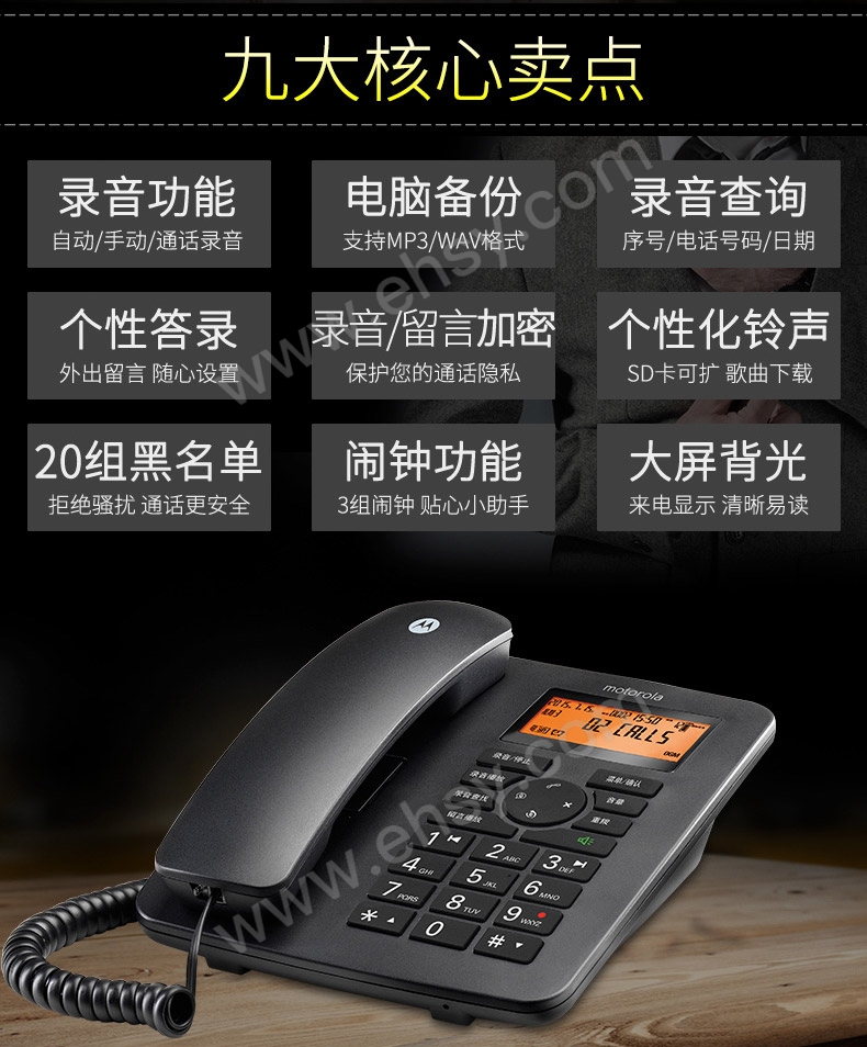 | 功能 | 来电显示、铃声选择、一键拨号、带通讯录、自动答录 |