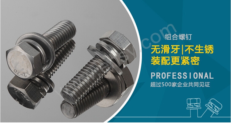 组合螺钉是指一个螺钉配一个弹垫在配一个平垫通过搓牙,组合紧固在一起的组合件。