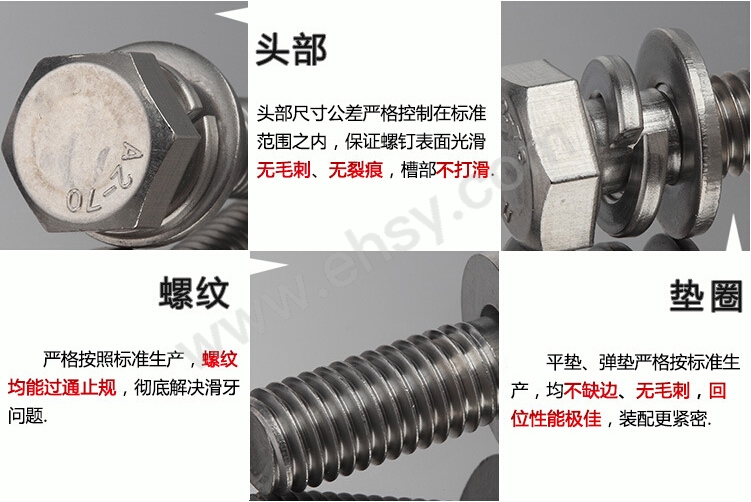 4)保持螺纹清洁,为确保螺丝和螺帽配合顺畅,建议把产品装在干净的容器内取用,勿随意放置。