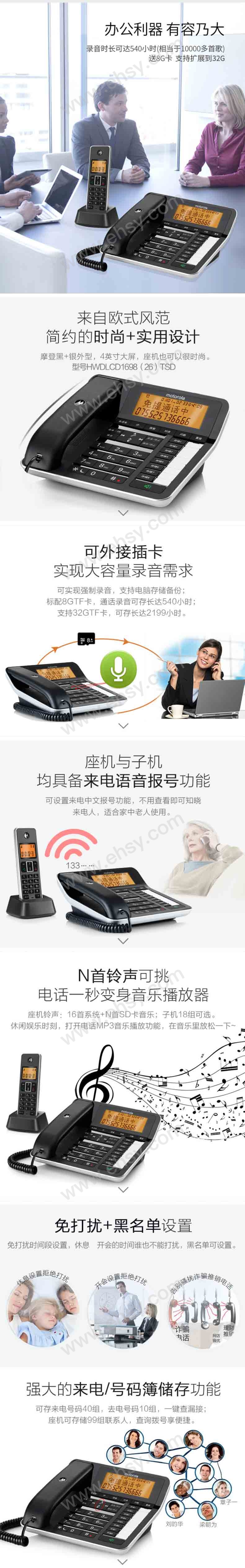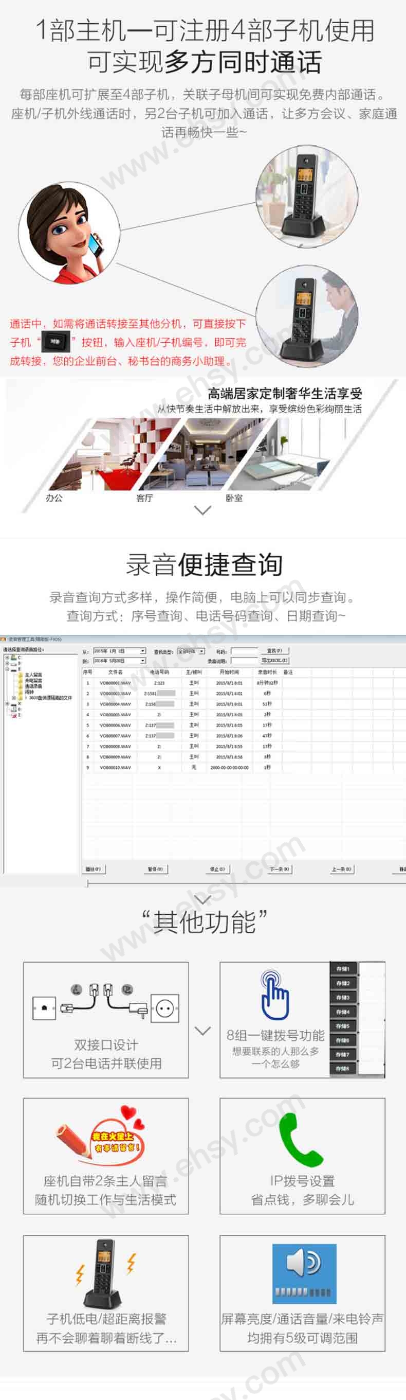 | 功能 | 来电显示、铃声选择、一键拨号、自动答录、带通讯录、 |