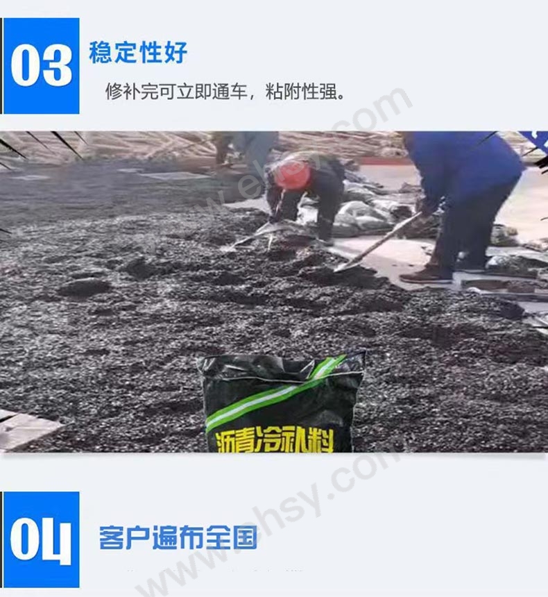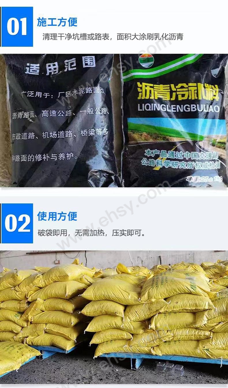 1.低温施工时,应将其放在5℃以上的库房内存放24小时候进行。 2.高等级公路修补时,修补区域的四周和边角应保证充分地压实。 3.采取随时修补方式代替传统的集中修补方式,将最为经济、有效。 4.施工界面应齐整洁净并尽量保持干燥 ,洁净干燥的表面有助冷补料发挥最大的附着力。 5.施工应当认真仔细,冷补料面层不宜用人工反复修整。 6.紧急抢修情况下,用运料车的车轮碾压几遍,或用铁锹人工拍打几下即可。 |
