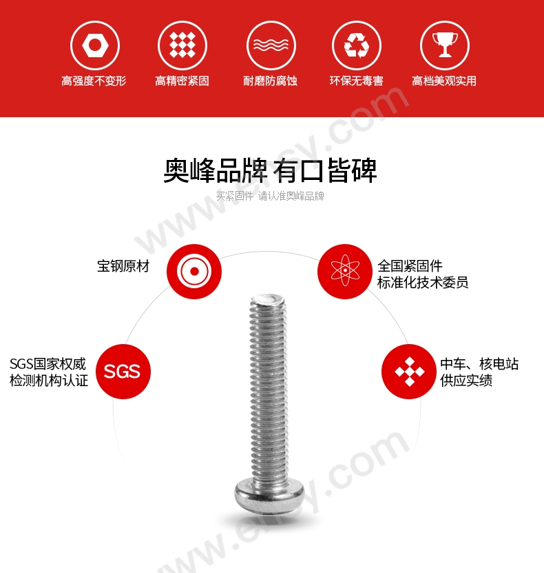 4)保持螺纹清洁,为确保螺丝和螺帽配合顺畅,建议把产品装在干净的容器内取用,勿随意放置。