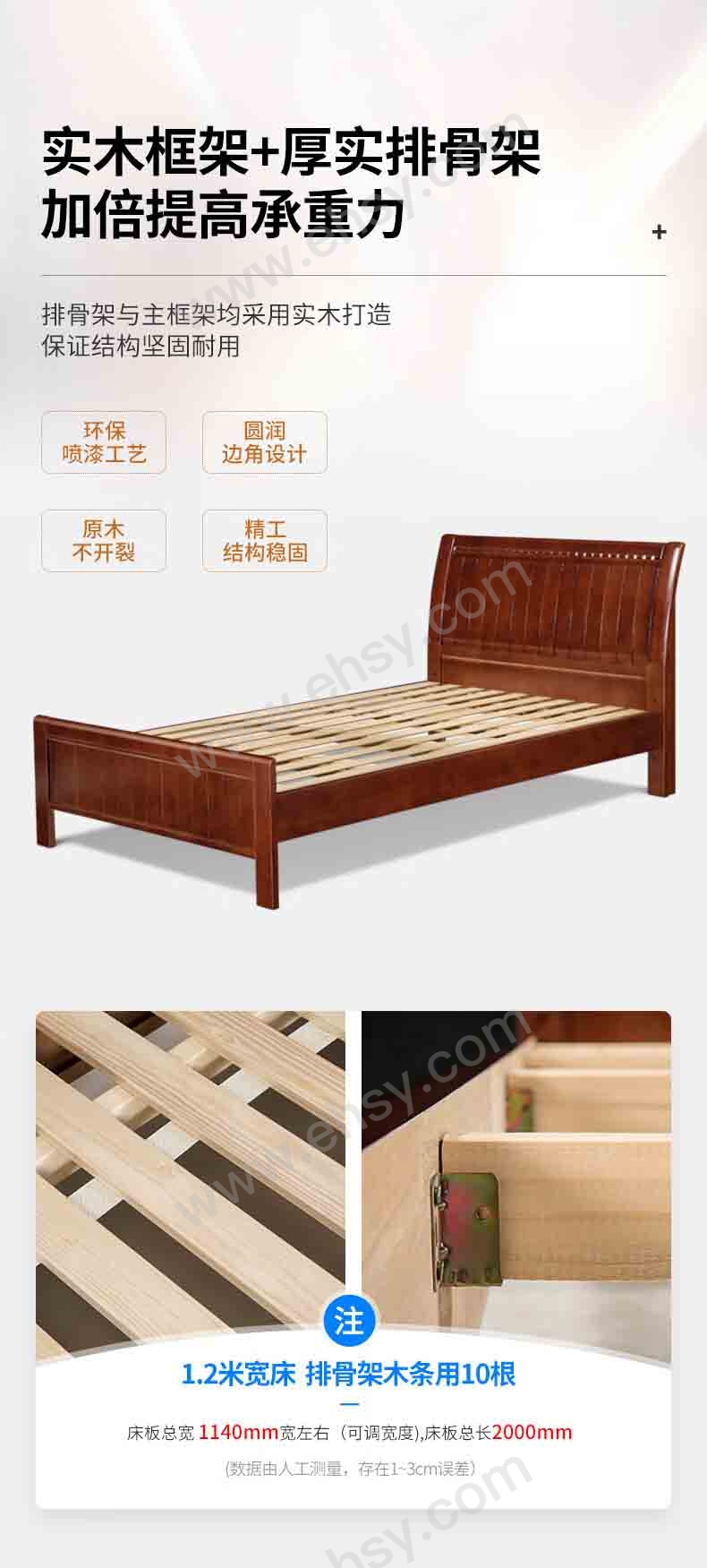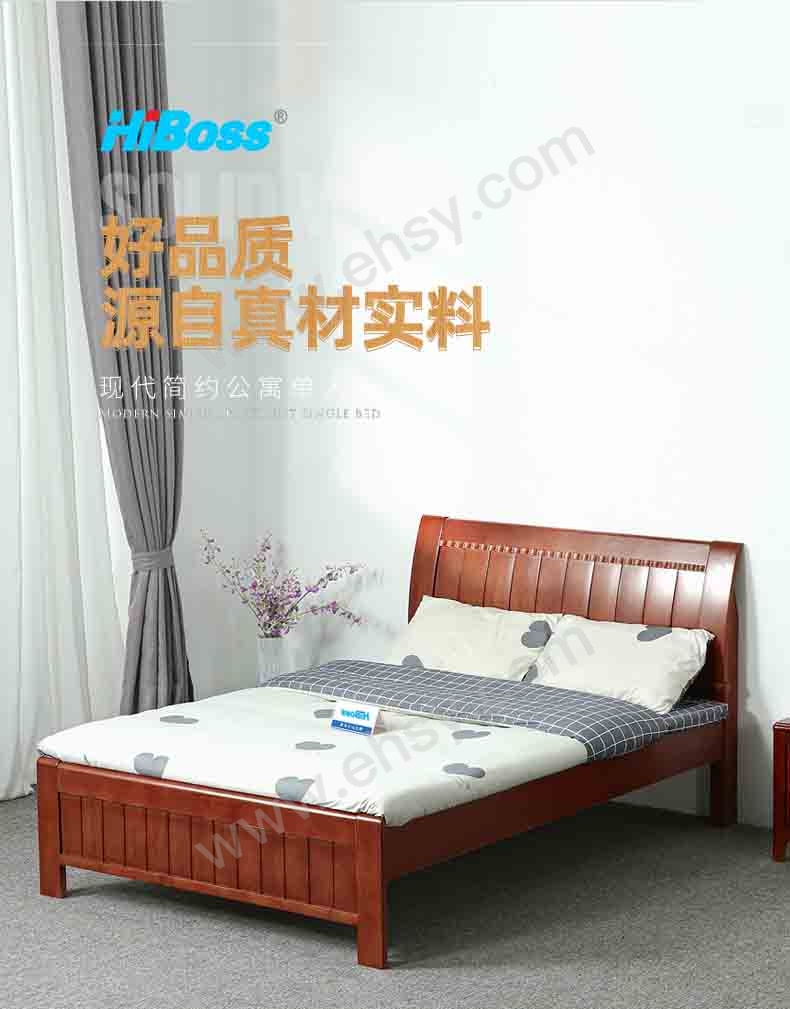 • 首页> 办公> 办公家具> > 单人床> HiBoss 实木床小户型卧室家用床1.2米单人床+10厘米厚床垫,GJSP-135 2000*1200*960mm 售卖规格:1套