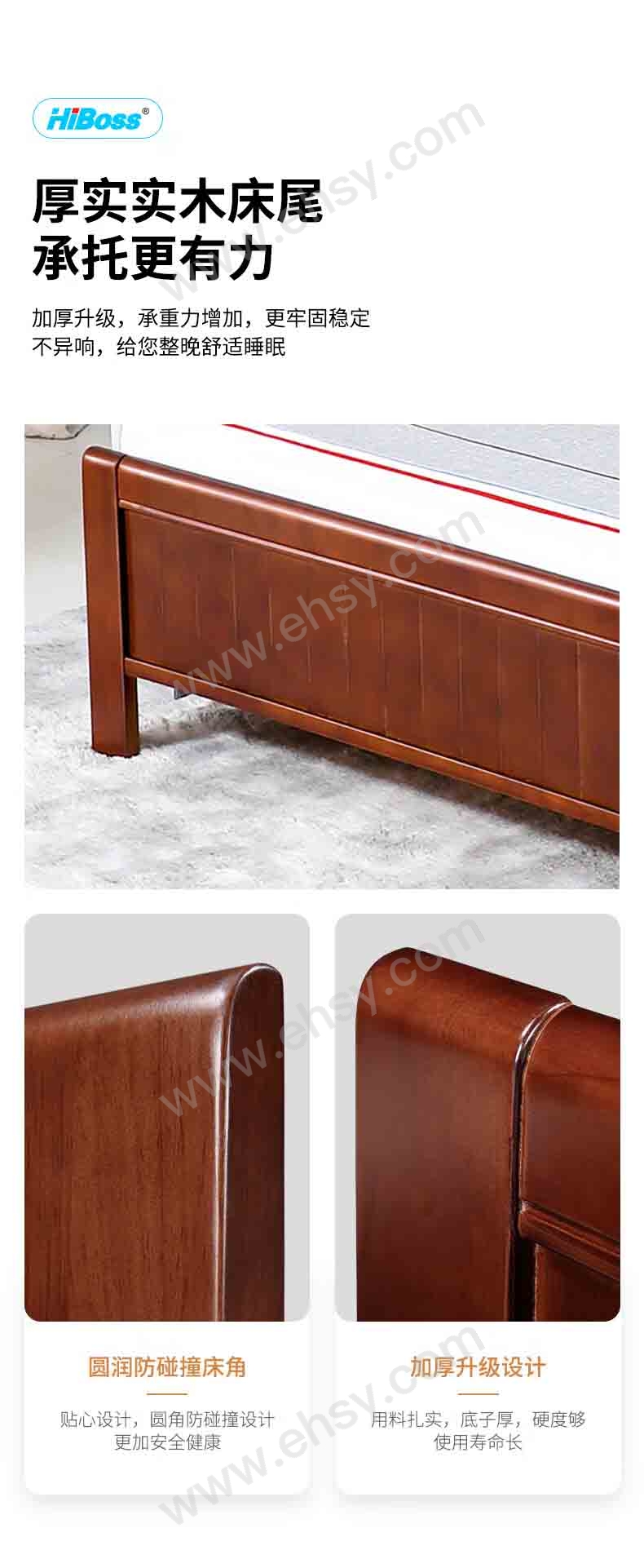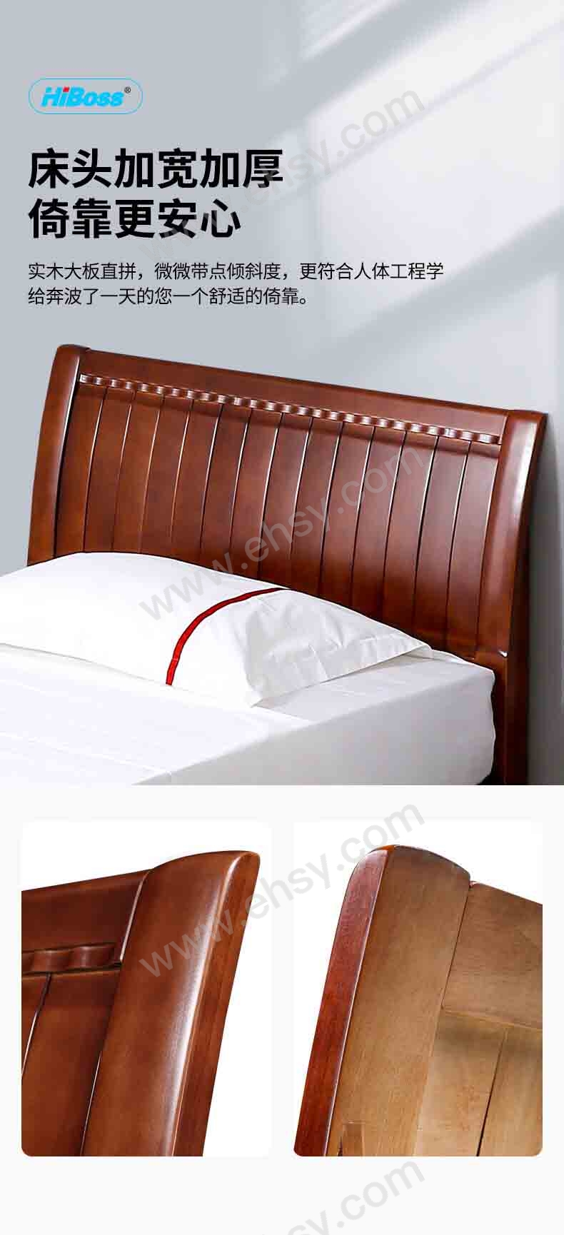 HiBoss 实木床小户型卧室家用床1.2米单人床+10厘米厚床垫,GJSP-135 2000*1200*960mm 售卖规格:1套