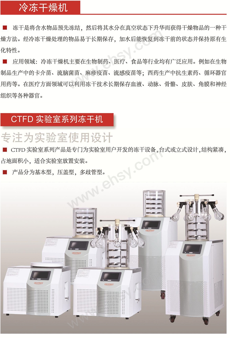 ● CTFD实验室系列产品是永合创信专门为实验室用户开发的冻干设备,台式或立式设计,结构紧凑,占地面积小;适合实验室放置安装。