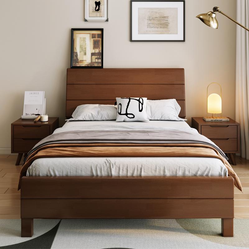 企诺 橡胶木床胡桃色,QNBa1101LF101-15HT 1500*2160*980mm 售卖规格:1张