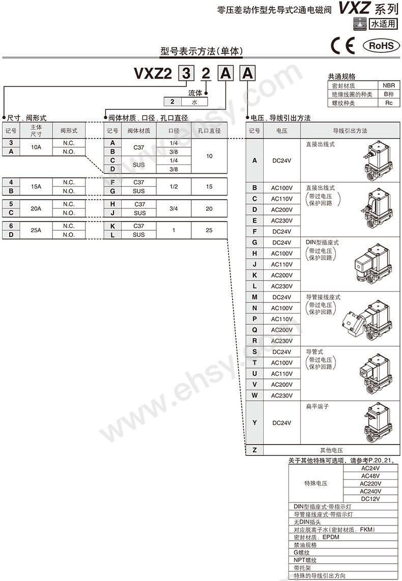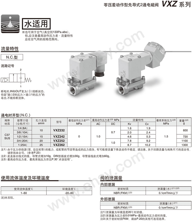VXZ 系列 先导式零差压启动型2通电磁阀 水用