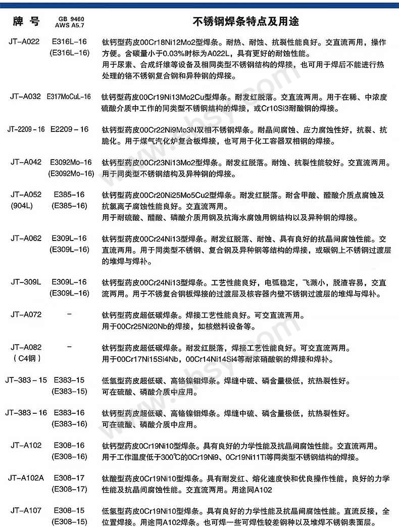品牌型号 锦特 E309-16(A302)Φ3.2