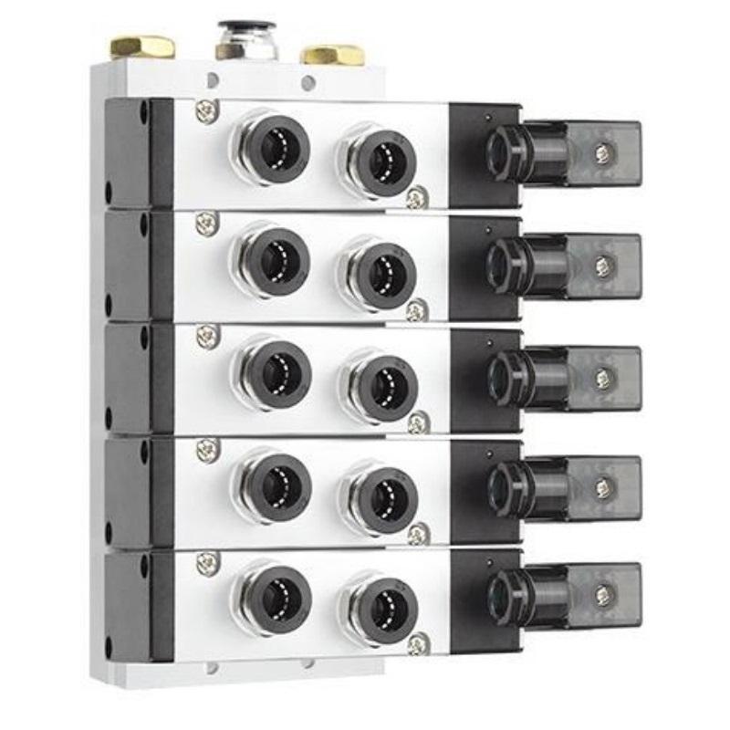 谦华智科 4V系列气动气缸控制汇流板电磁阀岛阀组,FD-4V410-15-AC220V-5F:5位,快插口12mm 售卖规格:1个