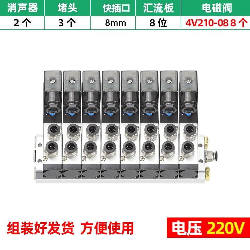 谦华智科 4V系列气动气缸控制汇流板电磁阀岛阀组,FD-4V210-08-AC220V-8F:8位,快插口8mm 售卖规格:1个